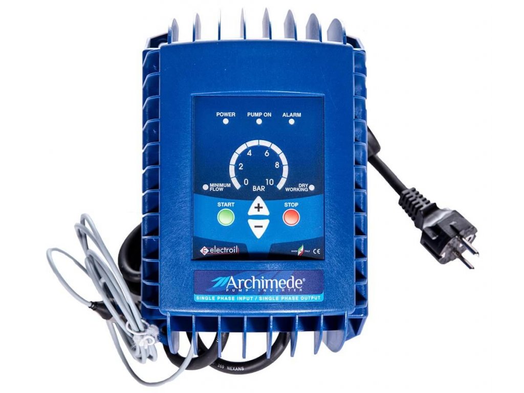 Frekvenčný menič pre jednofázové / trojfázová motorové čerpadlá. Zariadenie má pomocný displej a dotykovú klávesnicu pre nastavenie požadovaného tlaku a ovládanie čerpadla.