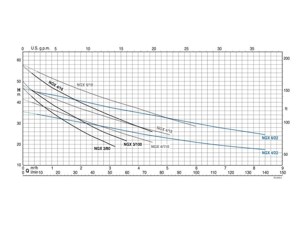- Lepšie samonasávania - čerpadla verzie NGX 3 a 4 nasávajú vodu z hĺbky 9,5 m za menej ako 2 minúty, táto vlastnosť umožňuje použitie čerpadla s dlhým sacím potrubím a bezpečnú prevádzku pri inštaláciách s bežnou nasávacej výškou v nepríliš hlbokých vrtoch tiež s dlhým sacím potrubím na hladinou vody