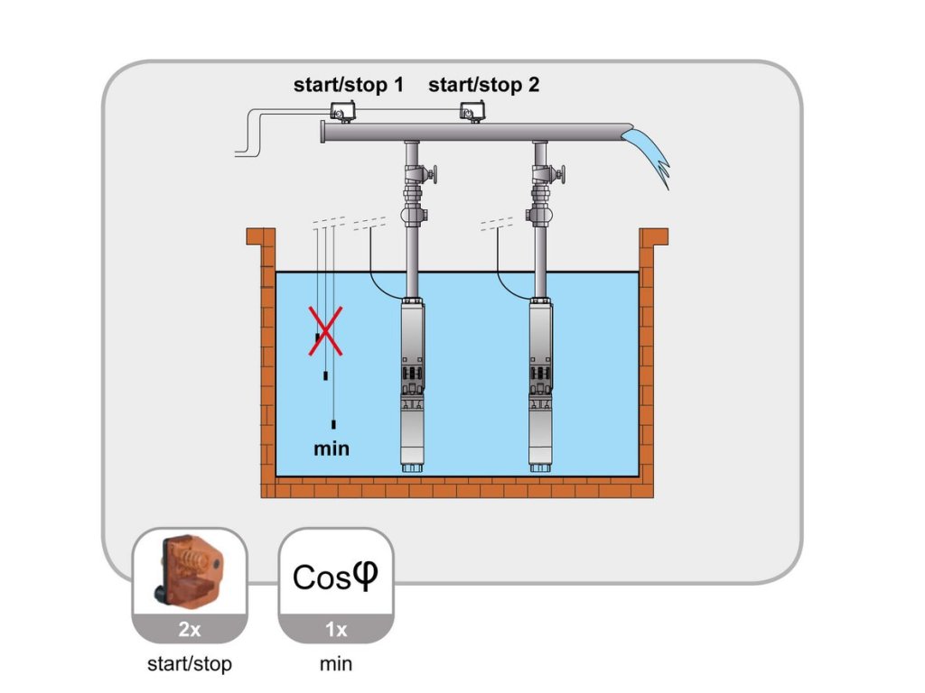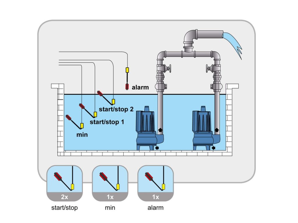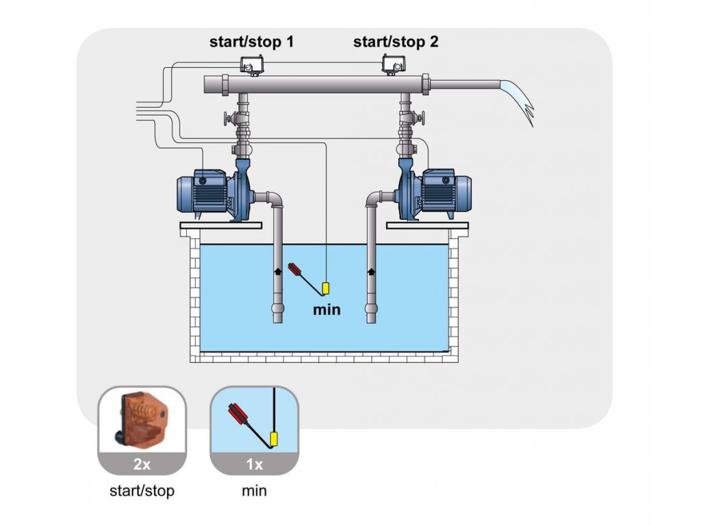 - kompatibilný s plavákovými a tlakovými spínačmi, snímačmi hladiny a prevodníky 4-20 mA - 12V