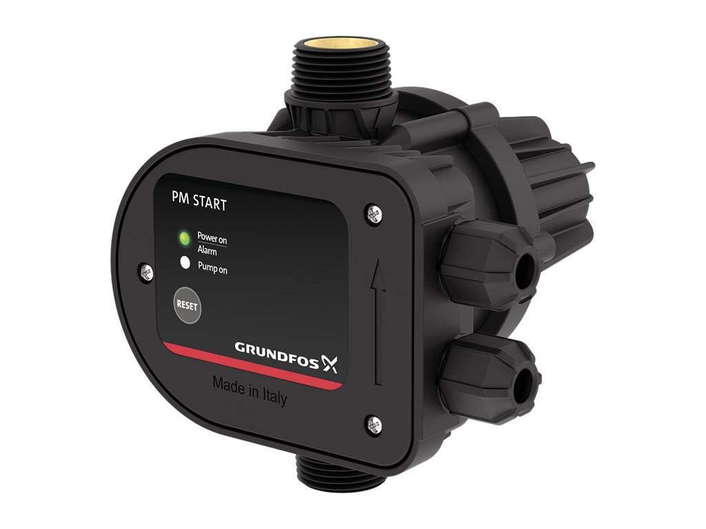 PM START je tlaková riadiaca jednotka určená na ovládanie spúšťania a zastavovania čerpadiel na zásobovanie domácností vodou. Ponúka základné riadiace funkcie, ochranu proti chodu nasucho a funkciu automatického opätovného spustenia.