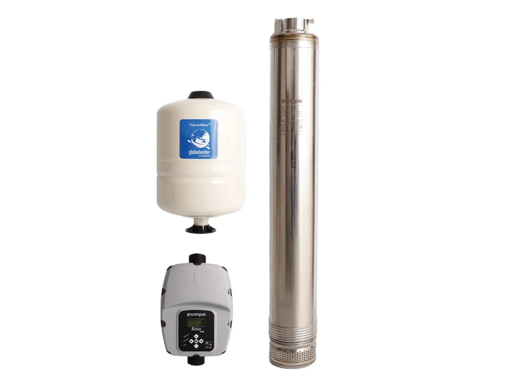 Domáce vodárne s elektronickým riadením pomocou frekvenčného meniča. Súprava pozostáva z 3“ ponorného čerpadla ASE s frekvenčným meničom, 8l tlakovej nádoby a ďalšieho príslušenstva.